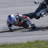 Im Ernstfall würden die Verletzungen dann wohl geringer ausfallen als bei vielen preislich vergleichbaren Motorrad-Textilanzügen ohne zusätzlichen Kevlarschutz. Motorrad-Jeansbekleidung kann jedoch nicht eine eng sitzende, hochwertige Lederkombi ersetzen. Und auch körpernah geschnittene Highend-Textilkombis mit vielen Einstellmöglichkeiten, Materialdoppelungen und an Sturzzonen sehr abriebfesten Geweben wie Cordura 1000 oder Schoeller dynatec beziehungsweise Lederbesatz werden von den "Blaumännern" wohl ebenfalls nicht übertrumpft. Motorrad-Jeanshosen und -jacken sind und bleiben ein Kompromiss. Gerade im Sommer jedoch ein ziemlich guter, weil man nicht verschwitzt und überhitzt unterwegs ist - der aktiven Sicherheit des Fahrers tut das sicherlich gut. Svenni wurde trotz vollen Körpereinsatzes für seine Verhältnisse übrigens gesund und munter wieder in die Kiste gepackt. Nach mehr als 20 Bodenkontakten auf hartem Flugfeld-Asphalt blieben nur ein paar Kratzer zurück. Wohl überflüssig zu erwähnen, dass man, selbst mit besten Motorradjeans bekleidet, derartige Schlitterpartien besser Profis mit ersetzbarer Gummihaut überlassen sollte.