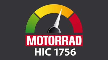 Beschleunigung in g: 187, HIC-Wert: 1170 - MOTORRAD HIC 1000 (Mittelwert beider Aufschläge): 1756