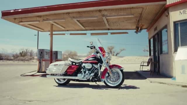 Standesgemäß angetrieben wird die Electra Glide Highway King vom aktuellen Milwaukee-Eight 114 V-Twin. Konkret bedeutet das: 1.868 Kubik, maximal 158 Nm bei 3.250/min und 94 PS (69 kW) bei 5.250/min in Kombination mit Sechsgang-Schaltgetriebe und Endantrieb per Zahnriemen. Besonderes Merkmal ist die Screamin‘ Eagle-Abgasanlage mit 2 lang gezogenen Auspuffrohren unter den Koffern.