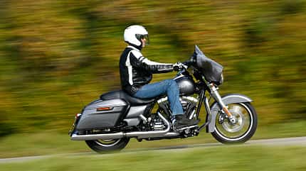 Harley hat seinen Verkaufsklassiker Street Glide für dieses Jahr gründlich überarbeitet. Das Design ist fließender und gefälliger geworden, das Fahrwerk angeblich stabiler und der Motor potenter: Die Nominalleistung stieg vom 84 PS starken 2012er-Modell auf nunmehr 87 PS. Ebenfalls neu: Die Harley-Davidson Street Glide rollt zum ersten Mal in ihrer Historie auf einem 19-Zoll-Vorderrad und nähert sich damit zaghaft stark umgebauten Custom Baggern. Wie auch die F6B, könnte man die Street Glide als abgespeckte Version einer Electra Glide bezeichnen. Denn hier verzichtet Harley ebenfalls auf Luxusfeatures, hohe Scheibe und Topcase. Lohn der Schlankheitskur: Gegenüber der E-Glide ist die Street Glide 40 Kilogramm leichter, schleppt aber immer noch 372 Kilo auf die Waage.