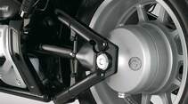 Berauschend, aber anstrengend. Denn jenseits der 160 km/h hängt der Fahrer an dem ausladenden, weit nach hinten gezogenen Lenker wie ein Fähnchen im Wind. Und das schwammig weiche, auf Komfort getrimmte Fahrwerk will bei hoher Geschwindigkeit auch nicht so recht spuren. Langsamer ist weniger stressig, auch wenn der 384 Kilogramm schwere Cruiser mit Nachdruck in Schräglage gebracht werden will, die breiten Reifen zu Spurrillenempfindlichkeit neigen und auf schlechten Fahrbahnen mit gehörigem Eigenlenkverhalten auf sich aufmerksam machen. Ganz angenehm und wohldosierbar arbeitet die Kombibremse, steckt locker das hohe Gewicht des Cruisers weg. Mit den bissigen Radial-Bremszangen des M-Modells haben seine Stopper nichts gemein. Leider bleibt auch bei ihm der Wunsch nach einem ABS unerfüllt.