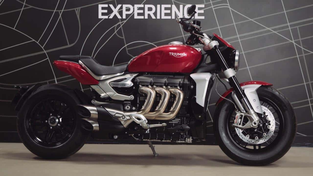 Herzstück der neuen Triumph Rocket 3 ist ein komplett neu konstruierter, längs eingebauter Reihendreizylinder. Mit seinen 2,5 Liter Hubraum ist dieser der hubraumstärkte Motorradmotor, der je in Serie gefertigt wurde. Doch nicht nur beim Hubraum haben die Briten aufgestockt, auch die Leistungsdaten wurden gegenüber dem Vorgänger deutlich angehoben. Als Maximalpower stehen 167 PS bei 6.000 Touren an. Die Drehmomentkurve – eigentlich müsste man hier von einem Hochplatteau mit kleiner Spitze reden – gipfelt bei 221 Nm bei 4.000/min – auch hier soll die Rocket 3 alle anderen Serienmotorräder in den Schatten stellen. Maximal lassen die Briten ihren Drilling bis 7.000 Touren jubilieren. Für den passenden Sound sorgt die Drei-in-Drei-Auspuffanlage mit zwei fetten, kurzen Endrohren rechts und einem links sowie einem mächtigen Sammler unter dem Motor. Geschaltet wird per Sechsgang-Getriebe und Servo-Kupplung. Das Wartungsintervall für den Dreizylinder wurde mit 16.000 km festgeschrieben. Mit dem neuen Ride-by-Wire-System stellt die Rocket jetzt auch vier Fahrmodi bereit. Mit an Bord sind auch Traktionskontrolle, Kurven-ABS, Berganfahrhilfe, Tempomat, Griffheizung sowie ein Keyless-Go-System.