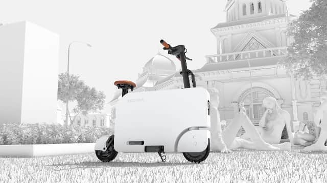 Muss der zusammenklappbare Elektroroller ans Ladekabel, soll er nach 3,5 Stunden wieder voll aufgeladen sein – an einer herkömmlichen Steckdose. Die Batterie kommt mit 6,8 Ah Kapazität. Sie sitzt im Inneren der Verkleidung auf dem Alu-Rahmen, der – bis auf den Sitz – ähnlich aufgebaut ist, wie die bekannten E-Tretroller.