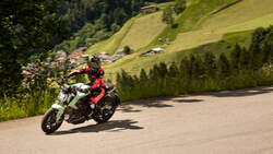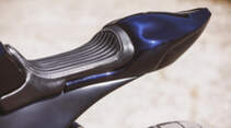 Statt einer bunten Kunststoffverkleidung hat die Zero Blackbird eine handgedengelte Verschalung aus Aluminiumblech. Von Paint Republic Vignale wurde eine dunkle Speziallackierung aufgebracht, die im Sonnenlicht leicht transparent wird. Dann sind die originellen Details umso besser zu erkennen. Etwa die beweglichen seitlichen "Landeklappen", die beim Einschalten und beim Bremsen aktiviert werden. Unten, integriert im Bugspoiler, sind zwei Ventilatoren eingebaut, die ebenfalls situationsabhängig angesteuert werden. Je mehr am "Gasgriff" gedreht wird, desto schneller drehen sie sich. Einerseits passt das zum Kühlbedarf des Elektromotors sowie der Akkuzellen, andererseits entsteht dabei auch dynamisierter, ansatzweise düsenjetähnlicher Sound. An den zahlreichen Schaltern im Cockpit können die Funktionen jedoch abgeschaltet werden, um den auch akustisch unauffälligen Tarnkappenmodus zu aktivieren. Im Sichtbereich des Fahrers sind einige weitere Spielereien zu finden: ein Fluglagenmesser, der am Boden immerhin auf die Kurvenschräglagen anspricht, und ein kleiner Bildschirm zur Infrarotkamera im Heck. Die Verkleidungsform ist abgeleitet von der legendären Lockheed SR-71 Blackbird. Deren größte Vorteile waren indes die extremen Flughöhen sowie die abartigen Geschwindigkeiten bis über Mach 3, also jenseits 3000 km/h. Auf zwei Räder lässt sich das natürlich nur bedingt übertragen.