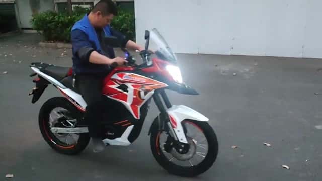 Mit maximal 350 Nm Raddrehmoment sowie 12 kW (rund 16 PS) Spitzenleistung soll der bürstenlose Elektromotor die VMX10S auf bis zu 120 km/h beschleunigen. Stufenlos, also ohne Schaltung, soll die Elektro-Reiseenduro immerhin in unter 10 Sekunden aus dem Stand auf 100 km/h sprinten. Genauer: in 9,8 Sekunden. Dazu gibt es einen langsamen Rückwärtsgang zum Rangieren und eine Motorbremsfunktion mit Energierückgewinnung (Rekuperation).