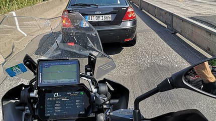 Bekannt als Alleskönnerin, hat die GS auch bei diesem Trip ihre Qualitäten bewiesen. Reisetempi auf der Autobahn von 180 bis 190 km/h macht die Kuh locker mit. Später im Geschlängel powert sie dann außerdem dank riesigem Hubraum und Shift-Cam-Technik heftig aus den Ecken – klasse! Als sportlich ambitionierter Fahrer fehlt mir aber das Feedback, vor allem von vorn. Man spürt die Front kaum, sitzt weit weg und der hohe, nah am Fahrer montierte Lenker und der dazu in Relation tiefe Sitz ergeben zudem eine inaktive Fahrerhaltung. Richtig sportlich ist anders. Außerdem entstehen im vorderen Verkleidungsgebilde schon ab zirka 30 km/h nervige Dröhngeräusche. Verursacht vermutlich vom Fahrtwind, denn die Geräusche treten auch bei abgestelltem Motor auf. Letztlich hat der Trip mit der GS echt Fun gebracht, doch fürs Landstraßenballern gibt’s nach meinem persönlichen Geschmack geeigneteres Material."