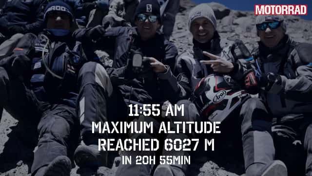 Jetzt kommt der große Moment von Michele Pradelli, R-1300-GS-Fahrer Nummer 4. Der ruhige Italiener sammelt seit früher Jugend Meisterschaften und Pokale. Anfänglich im Trialsport, jetzt bei Rallyes und Extremenduro-Events. Er ballert los, lässt das Gas am Boxer stehen, arbeitet mit dem ganzen Körper. Sand und Steine spritzen zur Seite, nichts hält ihn auf. Er meistert die engste Kurve der Schlüsselstelle, findet noch eine Linie, klettert immer weiter. Scheint unbesiegbar – bis die GS fliegt. Und er auch. Getrennt, aber unkaputtbar. Michele beherrscht es, unversehrt zu landen. Nahezu im Alleingang knackt er die magische Marke von über 6.000 Metern. 6.026, um präzise zu sein. Es ginge noch weiter, aber das war nicht der Plan. Fini. Die anderen rücken nach, Kräfte schwinden, Motorräder fallen, die Sherpas retten und helfen. Sauerstoff kreist wie ein Joint. Es ist vollbracht.
