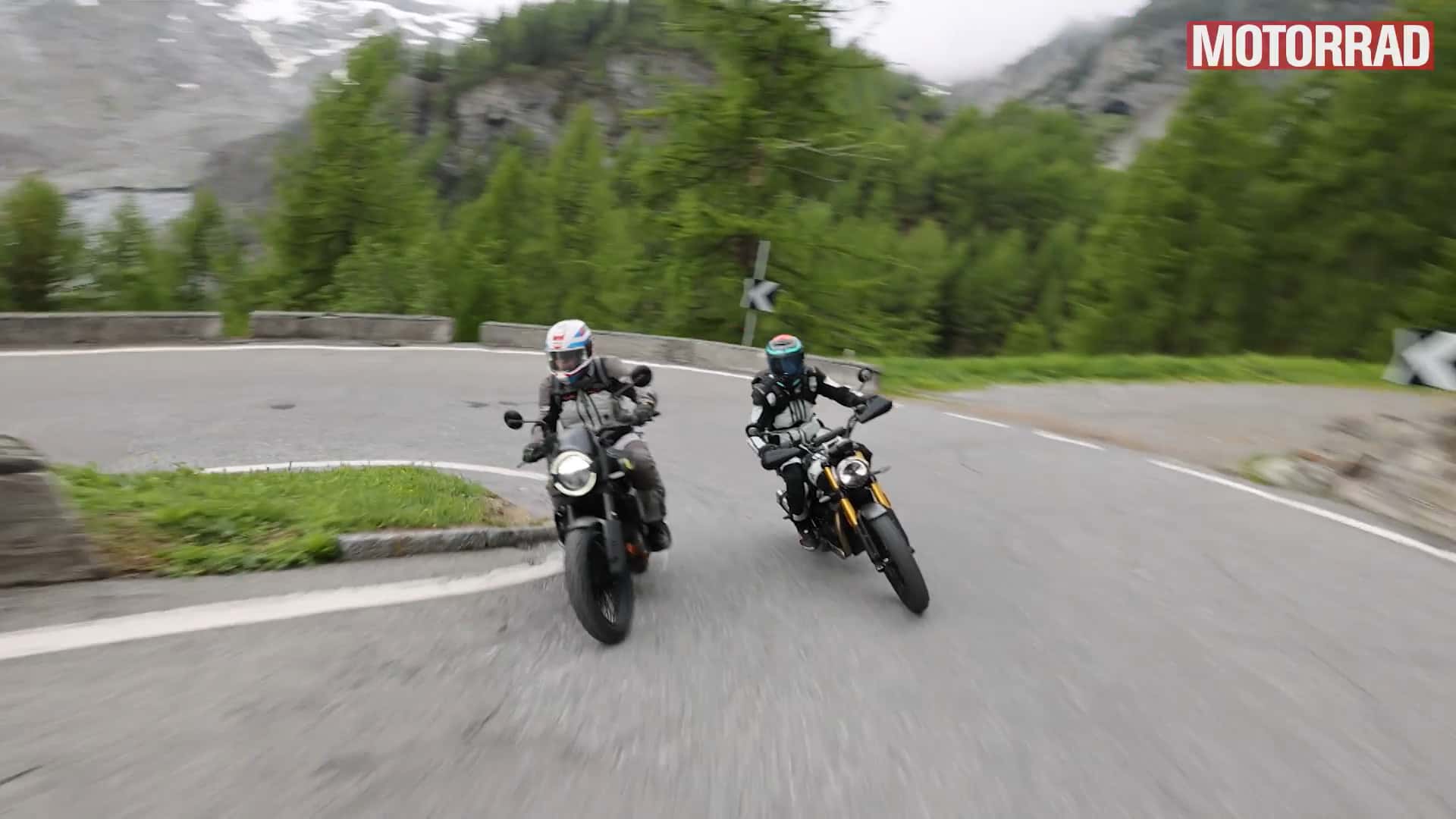 Begleitet vom unterhaltsamen Mix aus Graupelschauer und sonnigen Sekunden dringen wir ein in das topographisch interessante Weserbergland. Jetzt kommt Fahrspaß auf. Jens konfiguriert einen User-Modus individuell und ist erstaunt, dass der Africa Twin neben Komfort, Handling, Stabilität on- und offroad auch durchaus sportliche Talente innewohnen. Was Fireblade-Racer Meddes natürlich dankbar annimmt.
