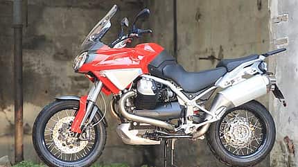 positiv überrascht in erster Linie das Handling des 271-kg-Boliden. Die Stelvio ist zielgenau, gibt sich handlich und neigt sich praktisch wie von selbst in Schräglage. Durch die straffe Fahrwerksabstimmung bleibt sie in Kurven stabil. Auch vom Zweipersonenbetrieb lässt sich die Maschine kaum beeindrucken, doch die Hochgeschwindigkeitsstabilität ist verbesserungswürdig: Oberhalb von 180 km/h pendelt die Guzzi um die Lenkachse.
