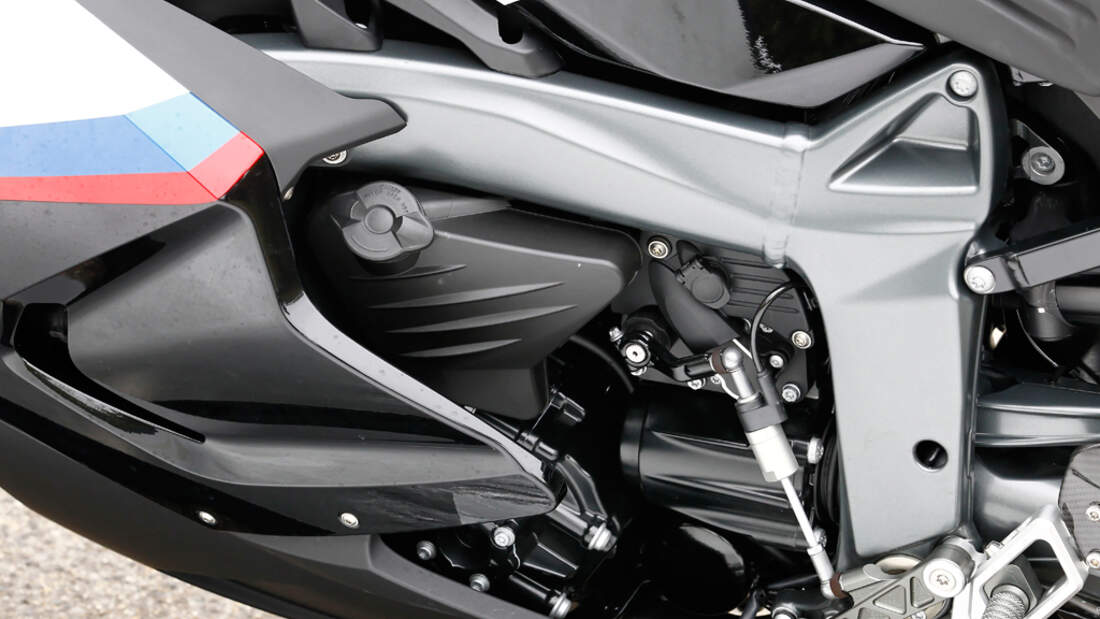 War der Motor der BMW K 100 RS noch ein braver Zieher, darf der 1300er-Vierer der aktuellen BMW K 1300 S als brutaler Rennmotor durchgehen. Was dieser Prachtkerl auf das Hinterrad haut, flößt jedem Respekt ein. Fast schwungmassenlos beißt er zu, in jeder Drehzahl fühlt er sich doppelt so stark an wie der alte Schlegel. Mindestens. Trötet, brabbelt und brüllt aus dem Auspuff, was für ein Spektakel. Ruck, zuck stehen 200 km/h auf der Uhr, und es ist erst der vierte Gang drin. Den hat man per Schaltautomat ohne Kupplung verzögerungsfrei reingekickt. Ein Sporttourer mit Hightech-Antrieb. Man beachte beispielsweise die Schlepphebel zur Ventilsteuerung. Teuer, und nur noch in der S 1000 und der ganz neuen Yamaha R1 zu finden.