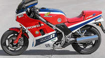 Die 1000er, vor allem der V4-Motor des Topmodells, protzte 1984 mit technischen High-End-Lösungen: Anders als beim Schwestermodell VF 1000 F treiben bei der R Zahnräder anstelle der Steuerkette die Nockenwellen an. Aufwendig und teuer, aber verlässlich. Letzteres galt vor allem zu Beginn nicht generell für die V4-Motoren, ihr Ruf war anfangs zweifelhaft. Auch die VF 1000 R ist davon betroffen. Das Problem mit Pittingbildung und einlaufenden Nockenwellen war in mangelnder Oberflächenhärtung und schlechter Ölversorgung begründet. Defekte Nockenwellen lassen sich überholen, Kurbelwellen sind allerdings längst nicht mehr lieferbar. Besserung bei der Ölversorgung verspricht der Einbau eines Oiling-Kits: Dieser stellt sicher, dass frisch gefiltertes Öl direkt zu den Nockenwellen geleitet wird und diese nicht erst an letzter Stelle der Versorgung im Ölkreislauf stehen. Apropos Öl: Experten raten zu mineralischem 20W-50 anstelle des häufig verwendeten dünnen Synthetiköls. Die Modelle ab 1985 erhielten einen größeren Wasserkühler, zudem einen Ölkühler und gelten als thermisch gesünder, die Ölversorgung aufgrund einer geänderten Ölpumpe und Ölwanne als sicherer. Wer in Sachen Kühlung ganz sicher gehen will, installiert einen anderen Thermoschalter, der den Lüfter früher aktiviert oder verbaut gleich einen manuellen Schalter. Für technische Anfragen, Umbauten und Teile gilt Alex Nolte von Maniac-Motors als Top-Adresse. An ihn kann sich auch wenden, wer auf 17-Zoll-Räder der CBR 600 F (PC 25) umrüsten will: Dann passen moderne Reifen, und mit dem 17-Zoll-Vorderrad verbessert sich das Fahrverhalten der 1000er enorm.