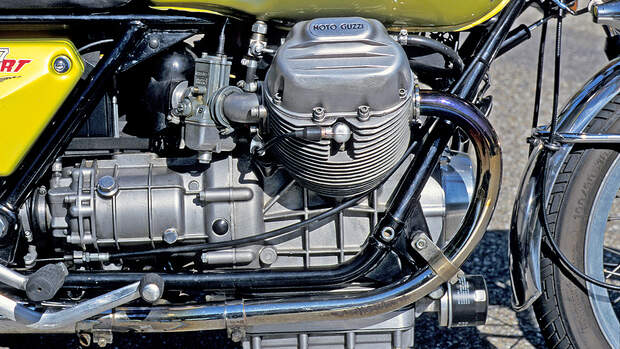 Trotz des ähnlichen Namens hatte die Moto Guzzi V7 Sport mit der V7 wenig gemein, vom Aufbau des V2-Motors einmal abgesehen. Tonti entwickelte ein komplett neues Motorrad, mit sportlichem Rahmen, niedrigem Schwerpunkt und stärkerem Motor.