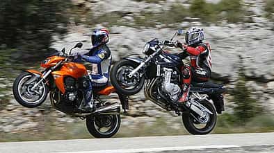 Während die Suzuki Bandit 1250 nur im Namen kriminell aussieht, verströmt die Kawasaki Z 1000 ...