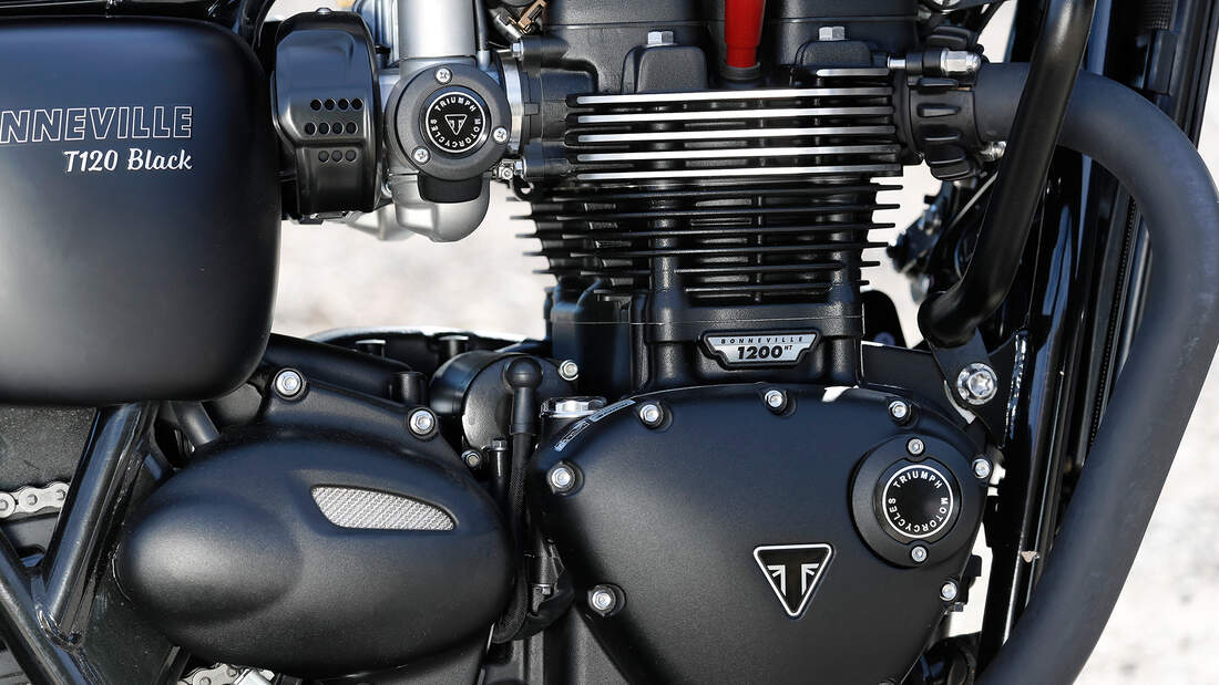 Mit einer Legende wie der Triumph Bonneville stehen die Chancen gut, sich innerhalb weniger Stunden zu rehabilitieren, den steifen Knochen mit ein paar Gasstößen wieder Freude einzuhauchen. Seit letztem Jahr gilt das umso mehr. Denn nun hängt im Herzen des Doppelschleifenrahmens der T120 ein fetter 1200er-Big-Bang-Motor. Und es sind nicht nur seine Kühlrippen, an denen man sich gar nicht sattsehen kann. Was die Herren aus Hinckley uns da präsentieren, könnte man locker gegen den Fernseher im Wohnzimmer tauschen. Dann gäbe es jeden Abend Traumschiff zu sehen. Wobei diese Beschreibung nur zum Teil zutrifft. So aufgeräumt, so massiv, so klassisch wie die Triumph Bonneville T120 Black vor einem steht, ist sie ein wahrer Traum.