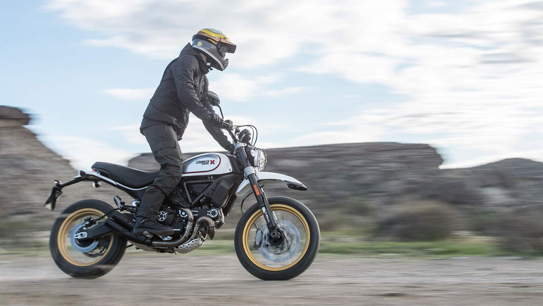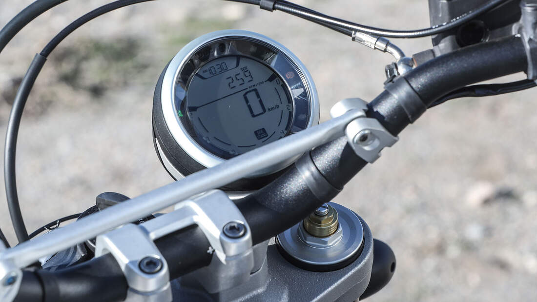 Im Gegenteil, die Ducati Scrambler Desert Sled macht ernst, taugt wirklich für gemäßigtes Gelände. Gleichmäßig sanft gibt der kultivierte Motor seine Leistung ab. Jederzeit gut kontrollierbar lässt sich der Kurzhuber per progressiv übersetztem, elektronischem Drehgriff ans Gas nehmen. Dies und die guten Führungsqualitäten (Schwinge 25 Millimeter länger als bislang) vereinfachen den Umgang auf losem Untergrund. Leicht lässt sich die Seilzug-Kupplung ziehen, nur das Getriebe braucht mitunter etwas Konzentration beim Schalten. Dumpf, doch gut gedämpft klingt der unverkennbare V2-Sound, dazu hämmert es markant aus der Airbox. Gut ausbalanciert meistert die Italo-Enduro selbst Tiefsand-Passagen easy, bleibt freundlich zum Fahrer. Kompliment für die speziell auf die Desert Sled abgestimmten Pirelli-Reifen Scorpion Rally STR: Ihr schönes Stollenprofil bietet on- wie offroad reichlich Traktion. Weder nervös noch störrisch umrundet die 800er sämtliche Kurvenradien.