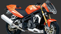 Der Kölner Motorrad-Designer Jens vom Brauck hat es einfach drauf. Vor gut zwei Jahren hat er die SFx als Auftragsarbeit für MZ entworfen. Und damit einen Volltreffer gelandet. Plötzlich war der sächsische Twin die Studie basierte auf dem serienmäßigen Streetfighter SF zu einem äußerst begehrlichen Big Bike mutiert. Kompakt, kubistisch, aggressiv. Anfang dieses Jahres wählten die MOTORRAD-Leser die SFx auf Platz fünf von über 20 vorgestellten Studien und Prototypen aller nahmhaften Motorrad-Hersteller (Heft 5/2008). Klasse. Leider hatte die SFx nur einen kleinen Schönheits- oder besser: Geburtsfehler. Man konnte sie nicht kaufen, weil MZ sich nie zu einer Serienfertigung durchringen konnte. Damit gaben sich Detlef Schill und Markus Kraege, die beiden Chefs der kleinen Motorradschmiede SK Bikes in Wedemark, nördlich von Hannover gelegen, nicht zufrieden: In einer Kleinserie haben sie die SFx als käuflichen Umbau aufgelegt. Fünf Exemplare bauten die erfahrenen norddeutschen MZ-Händler bislang, Nummer sechs und sieben sind in der Mache. Es können auch deutlich mehr werden. Doch wir schnacken später mit den beiden verschwägerten MZ-Enthusiasten über ihr Projekt.