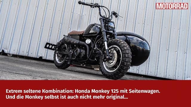 Ebenso viel Erfahrung wie Zubehör-Teile sind bei K-Speed für die Honda Monkey 125 vorhanden. Doch ein Gespann-Umbau, das war sogar für Eak & Team neu. Doch ein Kunde drohte mit Auftrag und ließ nicht locker. Da K-Speed bisher keine Gespann-Komponenten im Sortiment, aber die Auftragsbücher voll hat, einigte man sich so: Um einen proportional passenden Seitenwagen mitsamt Anbau kümmerte sich der Kunde selbst, und bei K-Speed wurde das Ganze im Custombike-Stil angerichtet.
