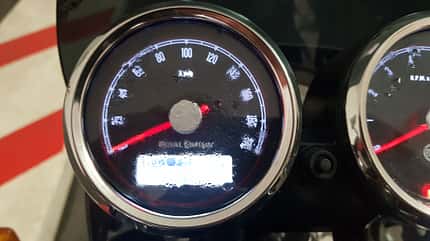 Eine Woche Laternenparken im Winter hat uns die Enfield wohl etwas übel genommen – zumindest ist der Blick auf den Tacho durch das Kondenswasser etwas getrübt.