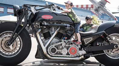 Vorhang auf für das größte Zweizylinder-Motorrad der Welt. Die Gunbus 410 hat einen V2 mit 6,7...