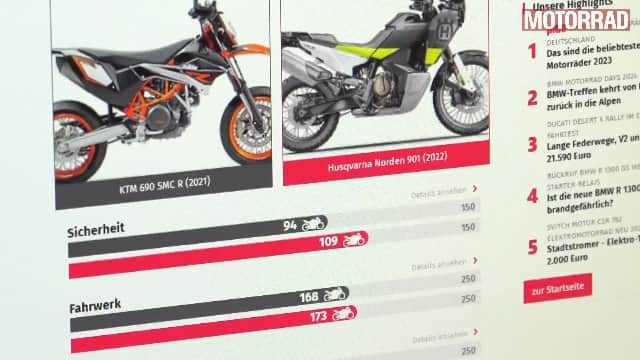 Motorräder mit der 1000-Punktwertung finden und vergleichen
