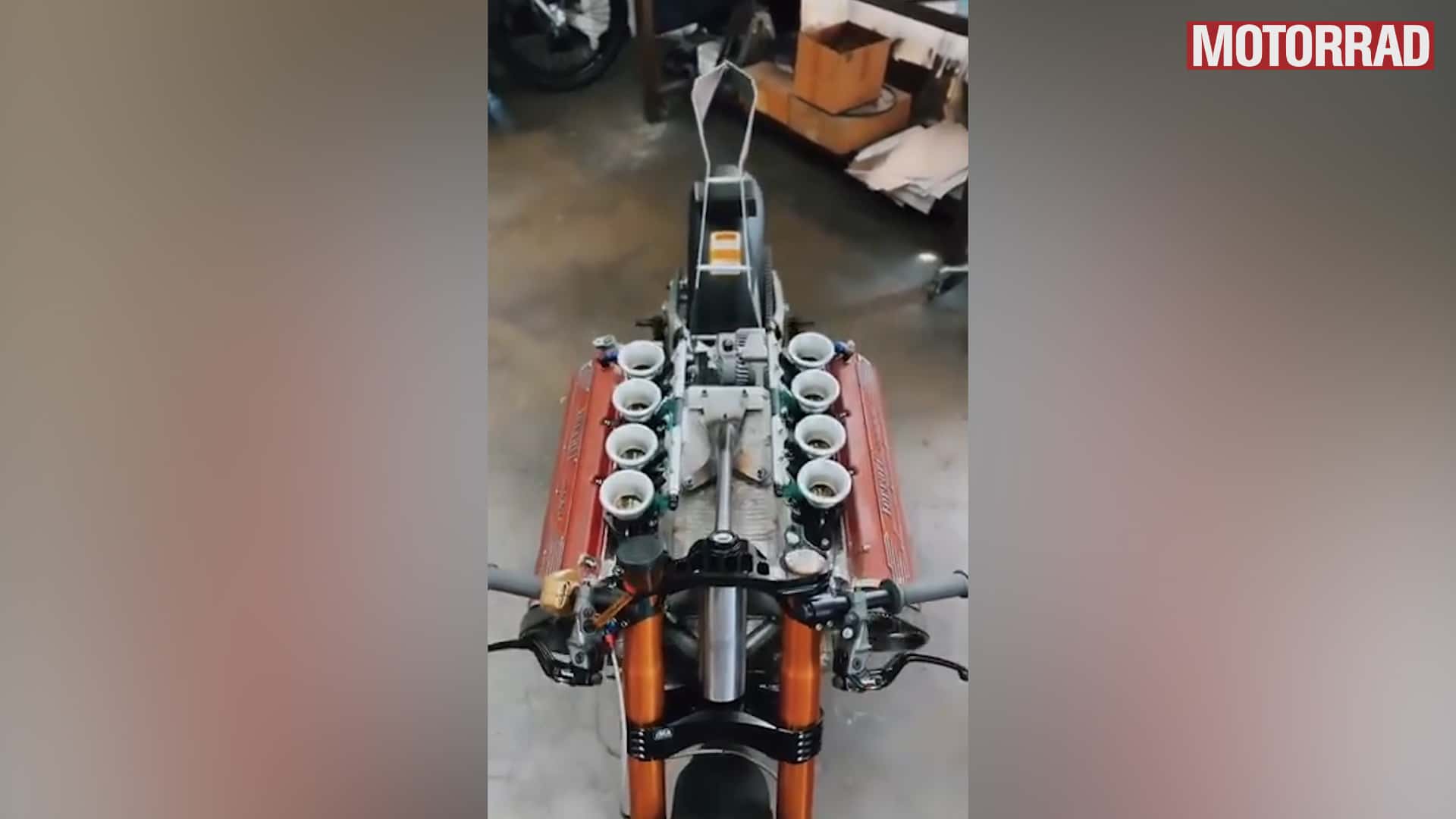 Übrigens: Max geht von 400 PS aus, da das Ferrari-Bike mit der Eigenbau-Auspuffanlage und ohne Emissionsbestimmungen etwas freier atmen darf.