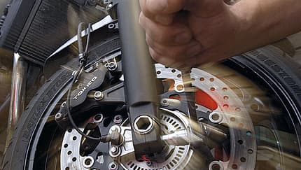 Es gibt außerdem Standards, die jeder unserer Vertragshändler erfüllen muss. So muss jeder Betrieb als Meisterbetrieb geführt werden, und auch Spezialwerkzeuge müssen vorhanden sein, was auch regelmäßig überprüft wird. Für die Direktannahme von Kundenfahrzeugen gibt es das Werkstattannahmeblatt, auf dem alle durchzuführenden Servicearbeiten aufgeführt werden und eventuelle zusätzliche Schäden am Motorrad dokumentiert werden. Als Ergänzung zur Rechnung erhält der Kunde das Serviceblatt, das vom Mechaniker unterschrieben wird und in dem alle Arbeiten abgehakt werden.