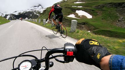 Aber wer ist schon so bescheuert, mit den schwächsten Vertretern der motorisierten Zweirad-Fauna einen Alpen-Cross zu wagen? Wir. Warum nicht, unsere Väter haben den Großglockner schließlich mit überhitztem Käfer geknackt, unsere Urväter sind nur mit Fell bekleidet und auf dem Rücken von Esel oder Elefant über Europas höchstes Gebirge gezogen. Geht schon. Dauert halt alles ein wenig länger.