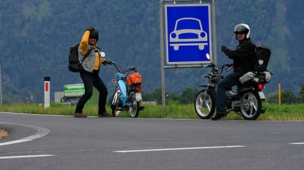 Reisen mit Mofas. Das klingt nach purer Entschleunigung. Doch im Verkehrsalltag lauern Tücken, die den Puls rapide auf 180 bringen. Tipps für die entspannte Tour mit Tempo 45.