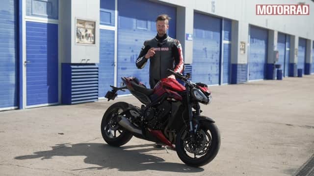 Aus insgesamt 3 Farben für die Triumph Speed Triple 1200 RS darf gewählt werden. Zu den Basislacken Sapphire Black und Matt Silver Ice stellt Trimph das von der halbverschalten RR bekannte Carnival Red. Das Rot ersetzt das 2022 eingeführt Baja Orange. Die Preise für den 180-PS-Triple starten aktuell bei 18.245 Euro in Schwarz und Grau, das neue Rot kostet 300 Euro Aufpreis.