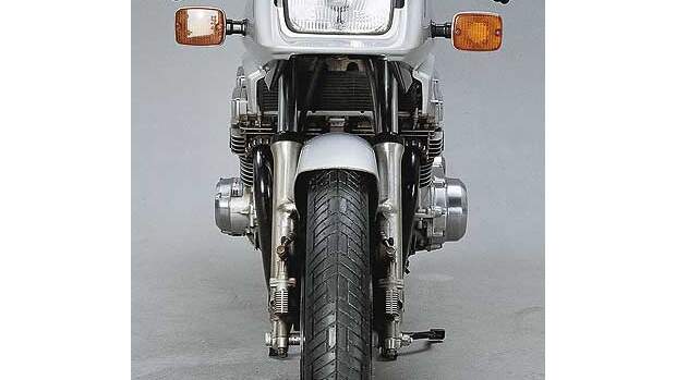 Doppelschleifenrahmen aus Stahlrohr,37er-Telegabel, zwei Federbeine, Doppelscheibenbremsevorn mit hydraulisch gesteuertem Anti-Dive-System,Scheibenbremse hinten, Alu-Felgen
