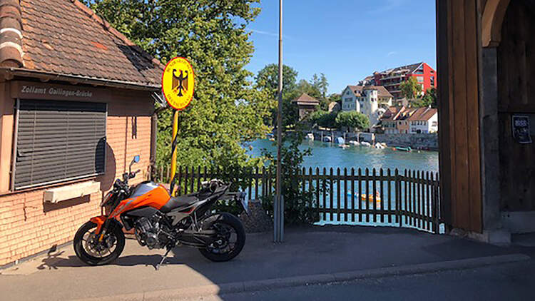 Grenzübertritte im Minutentakt von Deutschland in die Schweiz und umgekehrt hat die Österreicherin klaglos hingenommen, auch das kühle Bad des Fahrers stoisch beim Warten in der prallen Sonne ertragen, um dann wieder in flinken Kurven ihre gute Laune zu demonstrieren. Gut, dass es keinen großen Grenzstau in dem Gebiet mehr gibt, denn Kolonne oder Zone-30 mag der Twin nicht so recht, denn in unteren Drehzahlen rappelt und zappelt er dann schon. In den schnellen Bögen hat der Wechsel auf den Dunlop Sportsmart III das Vertrauen durch sein schönes Feedback und das tolle Grip-Gefühl auf dem warmen Asphalt nochmals beflügelt – flink rein und flink raus, ein Traum!"