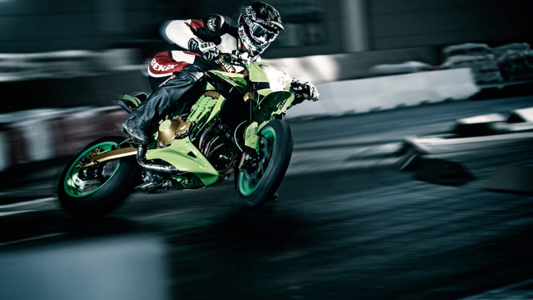 Wassergekühlter Vierzylinder-Viertakt-Reihenmotor, Bohrung x Hub 77,2 x 50,9 mm, Hubraum 953 cm³, 93,4 KW ( 127 PS) bei 10000 U/min, 96 Nm bei 8000 U/min, zwei oben liegende, kettengetriebene Nockenwellen, vier Ventile pro Zylinder, Tassenstößel, Nasssumpfschmierung, Einspritzung, Ø 38 mm, mechanisch betätigte Mehrscheiben Ölbadkupplung, Sechsganggetriebe, Grüne Spezial Kette.