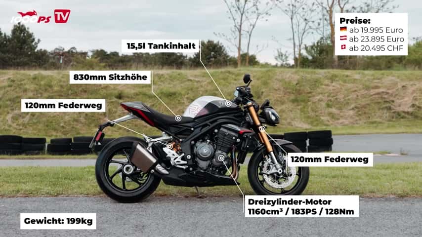 Wer nie richtig nachvollziehen konnte, was wir meinen, wenn wir vom Gefühl fürs Vorderrad, manchmal auch zum Vorderrad, schreiben, kann es sich beim Umsteigen von der großen auf die kleine Triple in die Hände hinein erklären lassen. Im Zusammenspiel mit dem agilen Lenkverhalten, das dennoch nie kippelig wirkt, ermöglicht jenes Gefühl der Streetie, mit hoher Präzision bei höchstem Tempo genau die Kurvenlinie zu treffen, die der Fahrer mit seiner Blickführung vorgezeichnet hat. In dieser Hinsicht übertrifft sie ihre große Schwester bei Weitem. Das schafft Sicherheit, Sicherheit macht schnell, und schnell zu sein macht Freude.