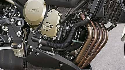 Gangwechsel gehen auf der XJ6 nicht so reibungslos vonstatten, die Schaltbox der Yamaha wirkt etwas knochig. Mehr gibt es an dem Antrieb nicht zu mäkeln. Zwar lässt er mit 74 PS vier Ponys weniger von der Leine als versprochen und bei mittleren Touren weist die Leistungskurve eine kleine Delle auf. Doch das fällt beim Brennen nicht ins Gewicht. Im Gegenteil: Die XJ6 geht sehr temperamentvoll zu Werke und marschiert willig durchs Drehzahlband. Der Vierling agiert spürbar lebendiger und dreht feuriger hoch als das Honda-Pendant. Darüber hinaus verwöhnt er seinen Treiber mit erstklassiger Laufkultur: Vibrationen kennt das Triebwerk der Yam nicht.