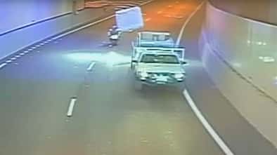 Einen üblen Schreck erlebte Aaron Wood, ein Motorradfahrer aus Brisbane: In einem Tunnel im...