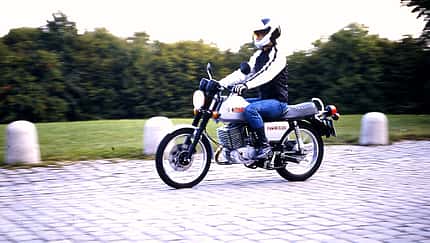 Der luftgekühlte Zweitakter, eigentlich von Grund auf solide und einfach aufgebaut, hatte in der DDR 21 PS Leistung. Für die 17-PS-Versicherungsklasse hierzulande ließ Importeur Gericke einen Krümmer fertigen, der die Leistung entsprechend drosselte. Um die fehlenden vier PS wieder zu mobilisieren, muß man lediglich 50 Mark für den alten Krümmer investieren und die Vergaserbedüsung ändern.