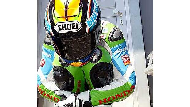 Sturz beim Training auf dem Sachsenring: auf die Hände gefallen und rechts das Kahnbein gebrochen, das ist der am schlechtesten heilende Handgelenksknochen; nach fünf Wochen Start beim Deutschland-GP.