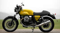 Doch welche Modellvariante wählen? Egal, Geschmackssache. Die Modellvarianten der Moto Guzzi V7 unterscheiden sich eher im Aussehen als technisch. Freunde von trendigen Café Racern sind wohl mit der auffälligen Racer (ab 2010) am besten bedient, die wegen Chromtanks, Drahtspeichenrädern und anderen netten optischen Gimmicks allerdings auch die Teuerste im Reigen ist.