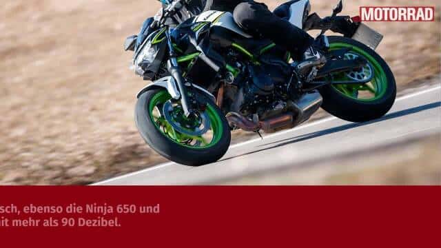 Während die CB 500-Mittelklasse-Modelle sowie die betont brave NC 750 X und der Luxus-Tourer Gold Wing von Honda unter oder bis 90 Dezibel brummen, liegen andere, umso wichtigere Honda-Modelle darüber: die Africa Twin sowie die neuen 750er Hornet und Transalp, aber auch die Rebel-Cruiser CMX 500 und CMX 1100. Kawasaki ist mit den 650er-Modellen im "grünen Bereich", lediglich die Retro-Variante Z 650 RS ist mit 91 Dezibel knapp darüber. Ebenfalls über 90 Dezibel: die Z 900 und die Z 900 RS.