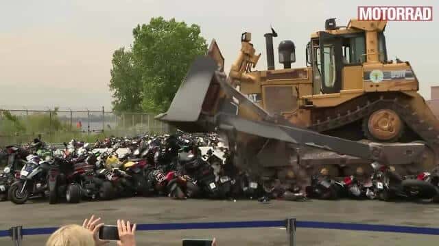 Die Zahl 900 erschreckt womöglich und die Art der finalen Außerbetriebsetzung der konfiszierten Motorräder verstört. Doch diese Aktion der Stadt New York mit dem Bulldozer zeigt nur einen Bruchteil der 2022 bereits beschlagnahmten Fahrzeuge. Seit Januar 2022 kassierte die New Yorker Polizei über 2.000 Motorräder, Roller und Quads ein. Gixxer-Fan Mario aus der Redaktion reagierte beim Anblick des Bulldozer erschrocken, hat er doch im Hintergrund eine weiß-blaue 1000er entdeckt und der Wunsch zur Rettung zu eilen durchzuckte ihn kurz.