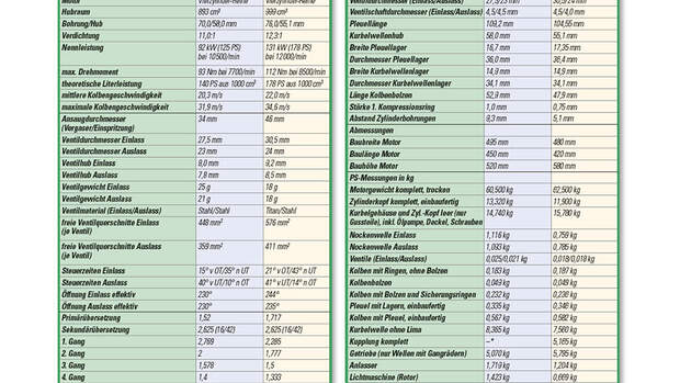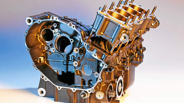 Ein Blick in die Tabelle (links) verdeutlicht weiter, was sich in Sachen Guss- und Fertigungstechnik getan hat. Fast jedes Bauteil der modernen SC 59, das wir auf die Waage legten, fiel leichter aus als das der SC 28 - mit Ausnahme des Kurbelgehäuses. Das alte Motorgehäuse der 900er ist ein Kilogramm leichter als das aktuelle. Dies ist auch der Tatsache geschuldet, dass der 1000er-Motor im Rennbetrieb über 220 PS verkraften muss, ohne dabei zu zerbrechen. So relativieren sich die zwei Kilo Mehrgewicht des modernen Motors sehr schnell. Immerhin muss er nicht nur dem deutlichen Plus an Pferdestärken und Newtonmetern trotzen, er trägt auch noch eine Ausgleichswelle, die entgegen der Drehrichtung der Kurbelwelle läuft, Vibrationen reduziert und mehr Schwungmasse generiert. Diese fehlt der SC 28, was erheblich zu Lasten der Laufkultur geht.