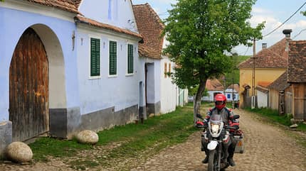 Alte pastellfarbene Steinhäuser säumen die breite, grob gepflasterte Dorfstraße, Kinder treiben Kühe von der Weide zurück in den Stall, ein blauer, russischer Lkw sammelt volle Milchkannen an den großen Holztüren der Gehöfte ein. Landleben wie aus dem Bilderbuch. Nur die deutschen Bewohner sind fast vollständig verschwunden, verließen Deutsch-Weißkirch nach dem Sturz des Ceauşescu-Regimes. Heute leben hauptsächlich Rumänen und Roma in Viscri.