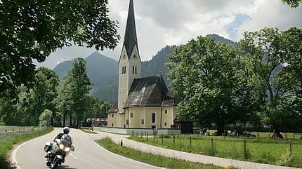 Über Kirchdorf, Griesenau und Schwendt auf einer klasse Bergstrecke durch die Ostflanke des Kaisergebirges hindurch auf der kleinen 176 nach Kössen. Ein unbedingt empfehlenswerter Abstecher führt von Griesenau links in das Kaiserbachtal auf einer kleinen Mautstraße (0,70 Euro/Motorrad) hoch zur Griesener Alm (Pausentipp). Hier sitzt man direkt am Fuß der senkrechten Felswände des Wilden Kaiser. Bei Weiterfahrt nach Kössen vor Erreichen des Orts rechts auf der 172 über die deutsche Grenze nach Reit im Winkl. Die B 305 macht als Deutsche Alpenstraße ihrem Namen Ehre und führt mit ihrem Kanada-Am-biente durch eine ganze Seenlandschaft nach Ruhpolding . Von dort geht es an den Felsklötzen von Reiter Alpe und Hochkalter vorbei nach Berchtesgaden zurück.