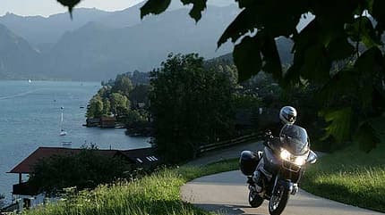 Zwei Kilometer nach dem Tunnel, im Ortsteil Haiden/Kreutern, von der Bundesstraße rechts nach St. Wolfgang über Rußbach, um auf schmalem Teerband St. Wolfgang am gleichnamigen See zu erreichen (Pausentipp Weißes Rößl). Entlang des Ufers wieder vier Kilometer retour, um in Bürgl rechts nach Strobl abzubiegen. Nach so viel Wasser wird es wieder Zeit für die Berge: In Strobl unterquert man die 158, um südorientiert und mit viel Kurvenspaß hoch Richtung Postalm zu fahren. Deren mautpflichtiger Teil (drei Euro fürs Motorrad) beginnt drei Kilometer hinter Strobl. Das winzige Sträßchen führt mit viel Schräglagen ins südliche Nachbartal zum Flüsschen Lammer, wo man auf eine T-Kreuzung ohne Beschilderung trifft. Dort links Richtung des markant sichtbaren Dachsteins mit Gletscher fahren. Man trifft schließlich auf die 166, auf der man links über den 17-prozentigen Pass Gschütt und Gosau an den Hallstätter See gelangt. Dort rechts ins unbedingt sehenswerte Hallstatt fahren (Pausentipp). Eine landschaftlich sehr schöne Strecke führt um das Südende des Sees nach Obertraun und auf 23 Prozent steilem Parcours hinüber nach Bad Aussee (Abstecher zum Grundl- und Toblitzsee oder zum Altausseer See möglich).