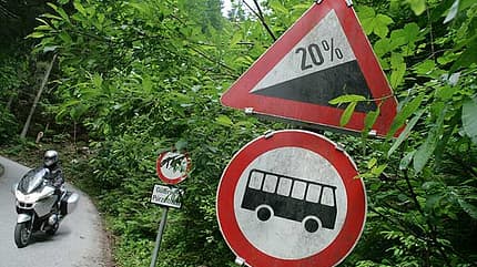 Der 2281 Meter hohe Hochkogel scheint zum Greifen nahe, und Schloss Hohenwerfen setzt, einer Fantasy-Burg gleich, noch einen Akzent auf die zackige Kulisse drauf. War die Straße bisher schnell und gut ausgebaut, kommt nach Bischofshofen auf dem Weg nach Mühlbach wieder die richtige Kurvenlaune. Die Landschaft bleibt spektakulär, wenn man im Ort dem Abzweig Arthurhaus/ Mandlwandstraße folgt, der zum felsigen Hochkönig führt. Auf der 1500 Meter hohen Endstation direkt am Fuß des Hochkönigs reckten sich die Gipfel fast noch mal doppelt so hoch vor dem Betrachter auf (siehe „Pausentipp”). Wieder zurück in Mühlbach, geht es nun auf einer flotten, kurvigen Bergstraße in westlicher Richtung weiter zur 20 Prozent steilen Ostrampe des Dientner Sattels .