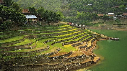 Diese führt uns jetzt in die Berge Richtung Mai Chau. Dabei sind erste Pässe zu erklimmen und die Gebiete ethnischer Minderheiten vom Stamme der Muong zu durchqueren. Ihre Häuser bauen sie auf Stelzen, in Kleidung und Aussehen erinnern sie an peruanische Indios. Zwischen den Dörfern kommen uns Horden von Schulkindern entgegen. Vielen Vietnamesen gilt Lernen als eine erstrebenswerte Tugend, und Schulen finden sich genauso häufig entlang unserer Route wie die pompösen, lokalen Verwaltungsgebäude der sozialistischen Einheitspartei, die dank Wirtschaftswachstum mächtig bleibt.