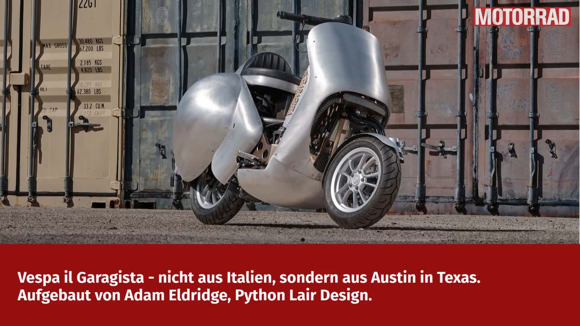 Im Sinne des Kunden trägt dieser Custom-Scooter nun den Namen "il Garagista". Eine weitere spezifische Bezeichnung wurde bisher weder von Adam Eldridge noch von Guido DeVita genannt. Den beiden Texanern und ihren Unternehmen dient der spektakuläre Spezial-Roller jedenfalls prächtig als Marketing-Vehikel, inzwischen auch international.