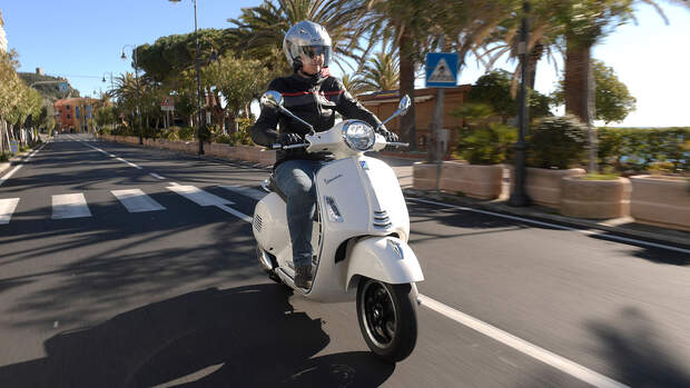 Am guten Fahrverhalten hat sich nichts geändert, die makellose Sitzposition und die übersichtlichen Instrumente sorgen für viel Kontrolle und Übersicht. Die serienmäßige Traktionskontrolle greift erst spät und auch dann nur defensiv ein. Bodenwellen und Schlaglöcher federt die Vespa ordentlich ab, noch mehr Komfort lassen sich angesichts der kleinen Zwölf-Zoll-Räder und dem dadurch beschränkten Platz für Federwege aus dem Vespa-Konzept nicht herausholen.