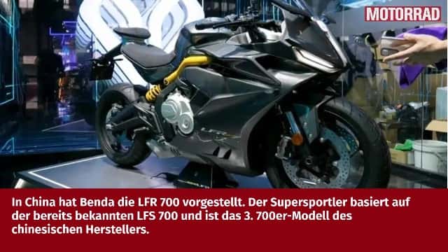 Nach dem Powercruiser LFC 700 und dem Naked Bike LFS 700 steht mit der Sportlerin LFR 700 die dritte große Benda auf dem Podest. Groß, weil im Heimatland China alles über 400 Kubik als großes Krad zählt und an der Spitze der Leistungspyramide steht. 94 PS holt Benda aus dem von Honda kopierten Reihenvierzylinder-Motor. Die LFR 700 als Supersportler verkörpert zudem einen weiteren Trend in China: Motorräder, die optisch und als Segment auffallen. Und dazu passt eine schnittig gestylte und technisch wohl aufwendige Maschine, denn es scheint, als käme die LFR mit einem Kamera-System oder Radar.