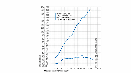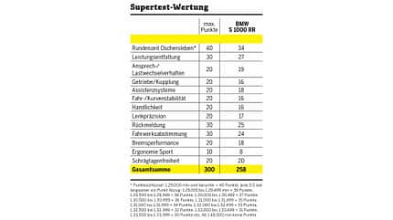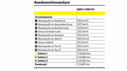 In Oschersleben konnte die BMW S 1000 RR im Supertest von PS ihre Stärken ausspielen: handlich in Schikanen, kräftig im Antritt, stabil beim Herausbeschleunigen und mit einer Elektronik, die stets Sicherheit vermittelt. Kleine Schwächen zeigten sich nur beim Vorderradgefühl in unruhigen Passagen und bei der Bremsstabilität am Limit. Schnellste Zeit für die BMW S 1000 RR in Oschersleben: 1:31,8. Der neue Richtwert für den Supertest von PS.
